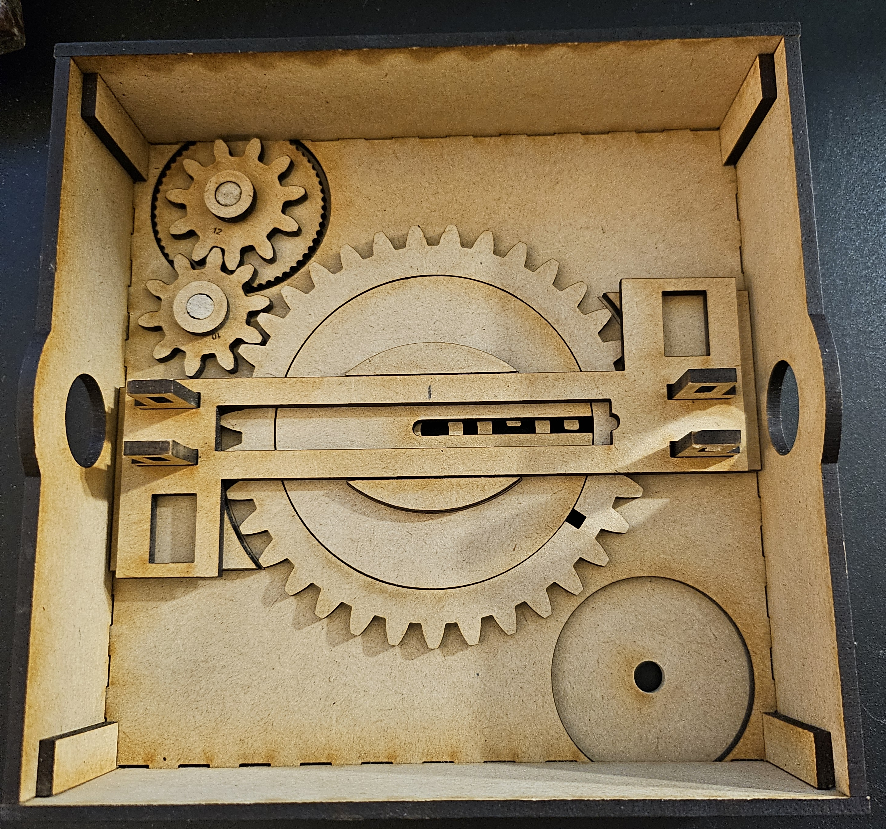 This document and the files to create this project are available at https://brainiac.com/GearedMazePuzzleBox and my Instructables page.