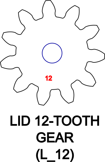 over the dowel , engaging with the 12-tooth gear,