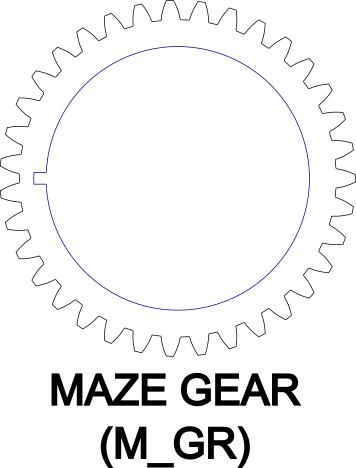 Glue the maze (M_AZ) and the gear ring with the small cutout (M_GR) together. Make sure that the cutout on the