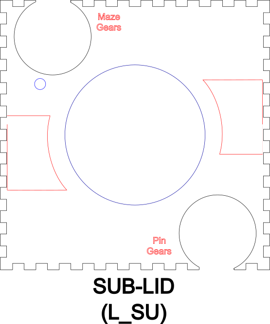Glue the assembled maze guides to the inside of the sub-lid using the engravings for on the sub-lid for placement.