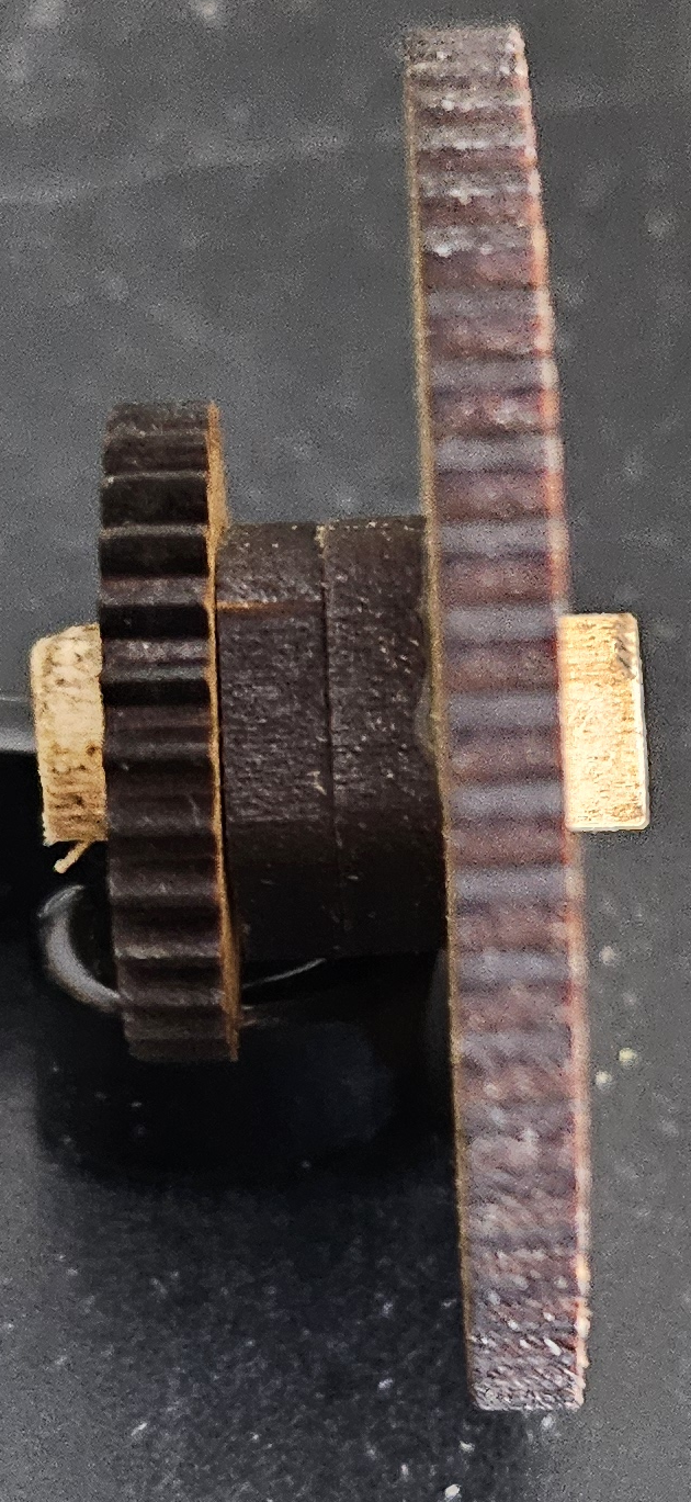 other side, glue the 12-tooth gear on to the dowel and
