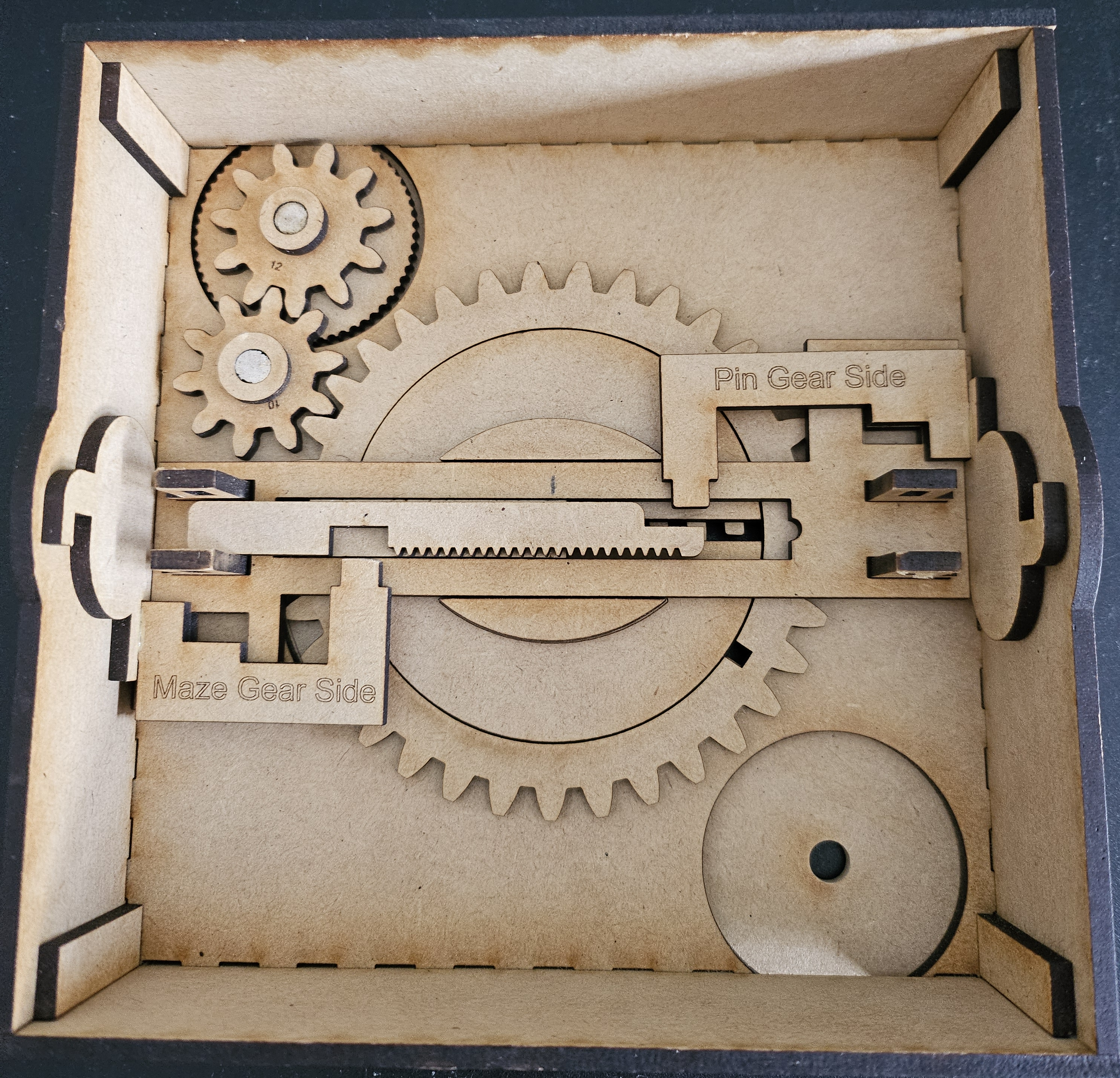 This document will detail the construction of the Geared Maze Puzzle Box. I use some of the documentation provided by Maker Design Lab when applicable.